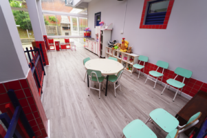 Outra melhoria importante foi a substituição parcial das instalações elétricas, ampliando a segurança do prédio. No berçário, na brinquedoteca e na cozinha lúdica, a escola passou a contar com piso vinílico, material que oferece mais conforto térmico e acústico, além de facilitar a higienização.