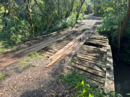 A empresa responsável está finalizando a colocação de brita nas cabeceiras, seguida pela compactação. Posteriormente, será realizada a pintura lateral da ponte e a instalação da sinalização. As outras duas pontes em obras em São Valentim também estão sendo finalizadas, com a compactação e a preparação da base para posterior pavimentação asfáltica.