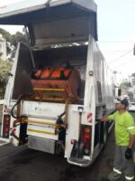 Mensalmente os contêineres distribuídos na área central da cidade recebem limpeza, a fim de manter a higienização dos equipamentos. Nas cores azul, para lixo seco, e laranja, para lixo orgânico, os contêineres contribuem para que a separação correta do lixo seja feita.
