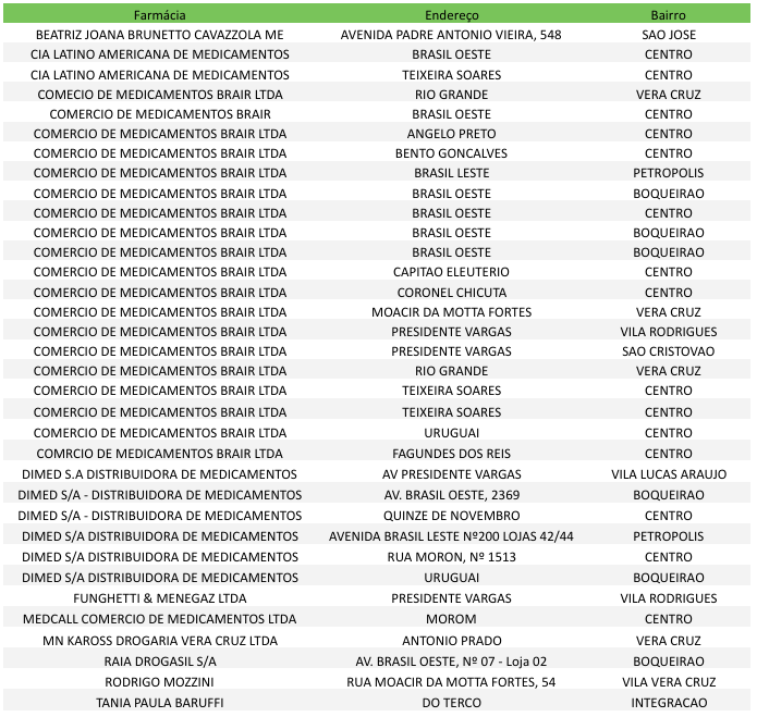 Secretaria de Saúde Lista de Farmácias credenciadas ao Programa Farmácia Popular do Brasil Consulta de Endereço das Farmácias do Programa Farmácia Popular do Brasil Farmácia Popular do Brasil Endereço de Farmácias cadastradas ao Programa Farmácia Popular em Passo Fundo: Atualizado em: 10/12/2025