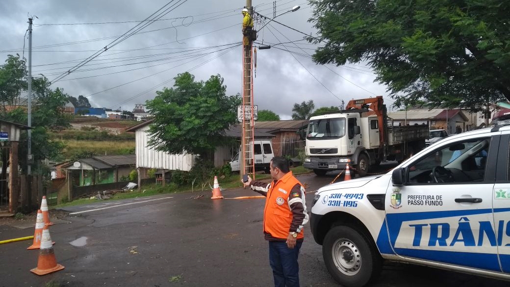 A Prefeitura de Passo Fundo e a Defesa Civil do município atendem a população, especialmente o bairro Zachia, que sofreu estragos com o vendaval registrado entre esta terça (25) e quarta-feira (26). Casas foram destelhadas, árvores e postes caíram e a energia elétrica também foi prejudicada com o vento forte e a chuva.